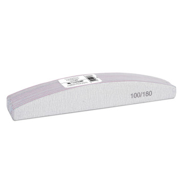 Jednorazowy, uniwersalny pilnik o gradacji 100/180 i kształcie łódki, do paznokci naturalnych i przedłużonych o niezwykle trwałych komponentach i długim czasie użytkowania. Cechuje się twardym, wysoce odpornym na złamania i odkształcenia środkiem.