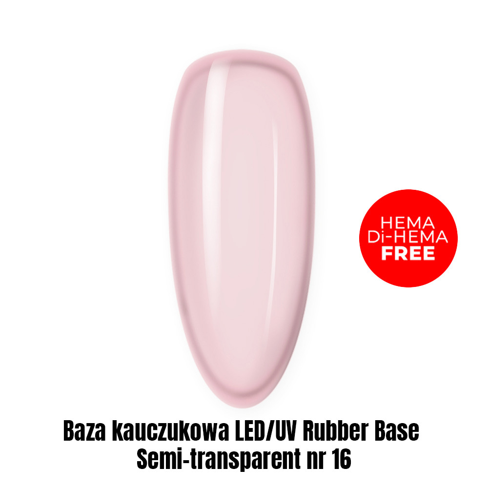 Baza kauczukowa LED/UV Rubber Base Semi-transparent nr 16 HEMA/Di-HEMA Free 1kg