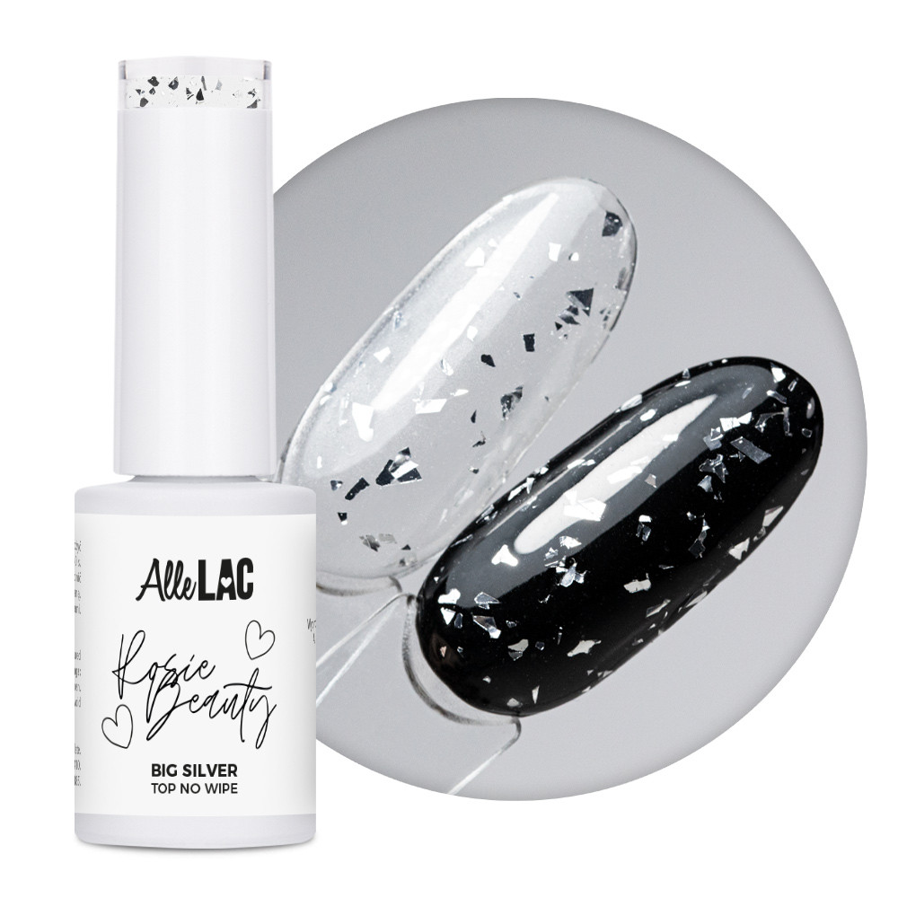 Big Silver to Top No Wipe z dużymi różnorodnymi srebrnymi kawałkami folii, które nadają każdej stylizacji niepowtarzalnego charakteru.