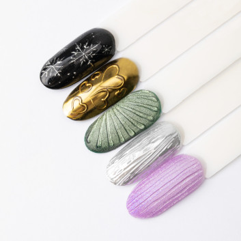 - Nałóż cienką warstwę 3D Relief Top Gel na utwardzony kolor lub zdobienie, tworząc pożądany wzór.