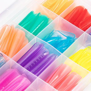 100sztuk Górne formy dual do budowy paznokci z podziałką kolorowe 12 kształtów 288 szt