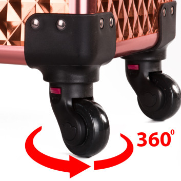 Kuferek kosmetyczny XXXL 4w1 walizka na kółkach obrotowych 360 stopni - K105-9H rose gold (okucia rose gold)