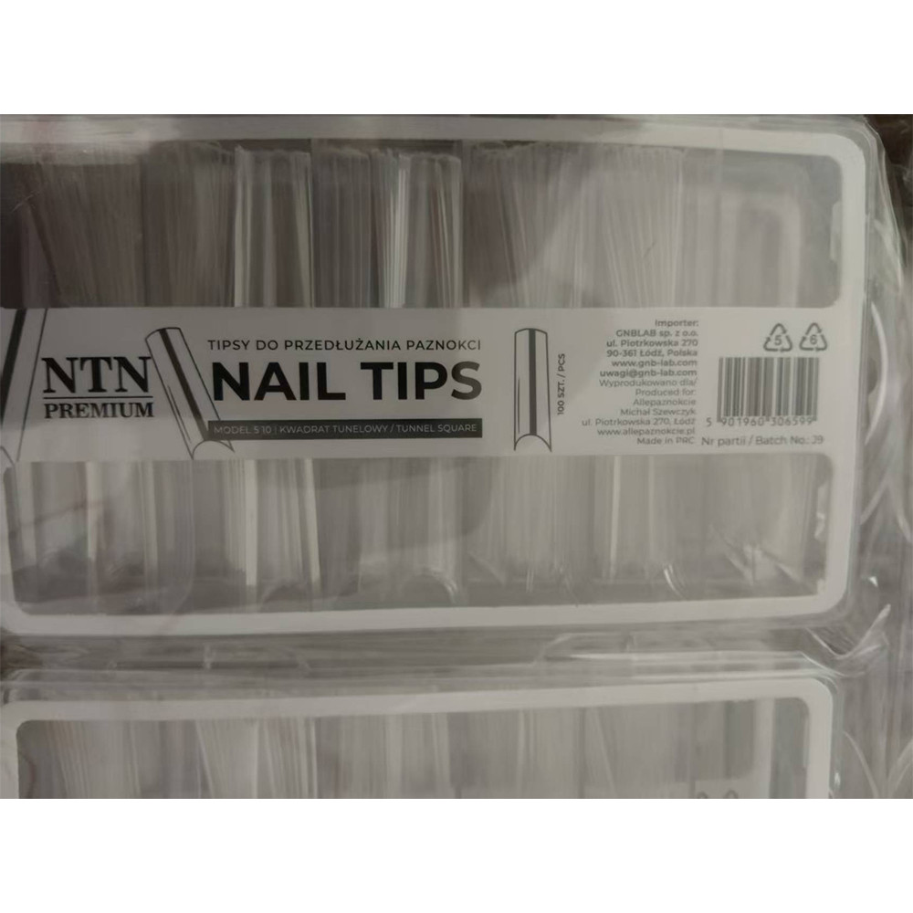 Tipsy do szybkiego przedłużania paznokci Nail Tips NTN Premium kwadrat tunelowy 100 szt