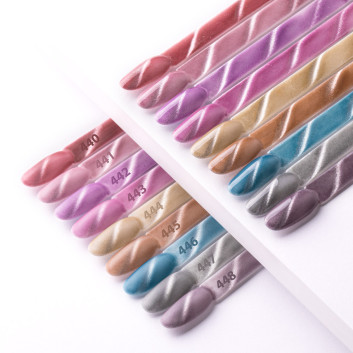 - dodatek metalicznego pyłu Cat Eye, które za pomocą magnetyzera zmienia dominujący kolor dodając perłową poświatę na powierzchni