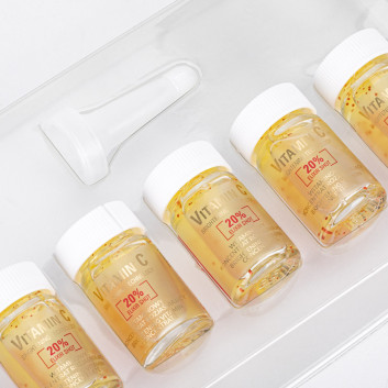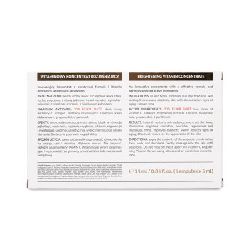 Żelowe koncentraty z zawieszoną kapsułkowaną witaminą E do bezpośredniego stosowania lub wprowadzania za pomocą ultradźwięków/mezoterapii bezigłowej. Zawarte w produkcie składniki aktywne nawilżają, rozjaśniają przebarwienia i działają przeciw starzeniowo.