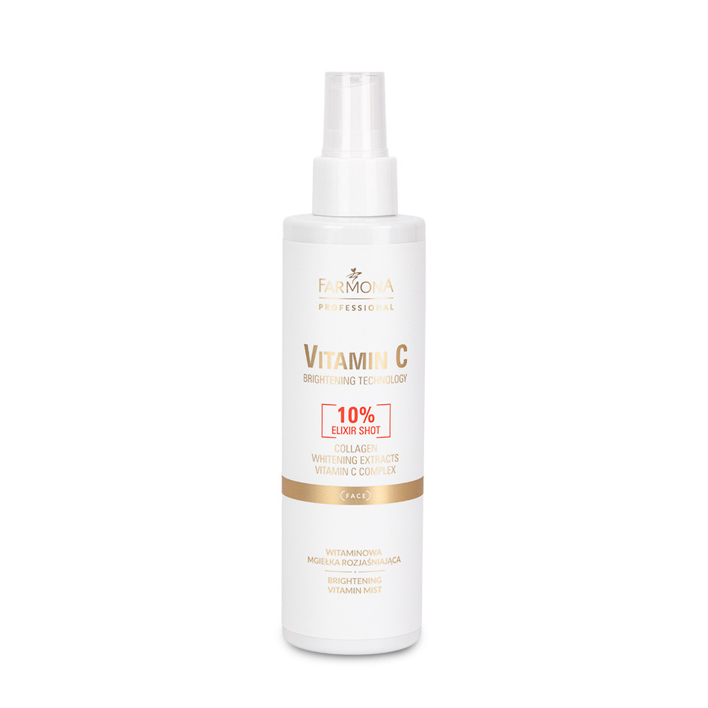 Poznaj Farmona Professional Vitamin C – witaminową mgiełkę rozjaśniającą do twarzy, która poprawia kondycję skóry, przywracając jej promienny wygląd. To kosmetyk stworzony z myślą o każdym rodzaju skóry, szczególnie tej szarej, suchej, zmęczonej lub z widocznymi oznakami starzenia i przebarwieniami.