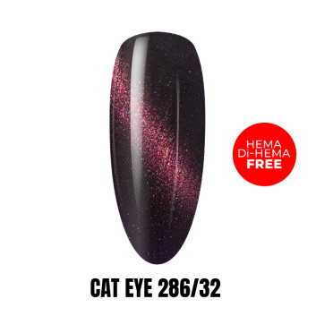 Lakier hybrydowy typu Cat Eye zawiera magnetyczne drobinki, które pod wpływem działania magnesu tworzą charakterystyczny, migoczący wzór przypominający efekt „kociego oka”.