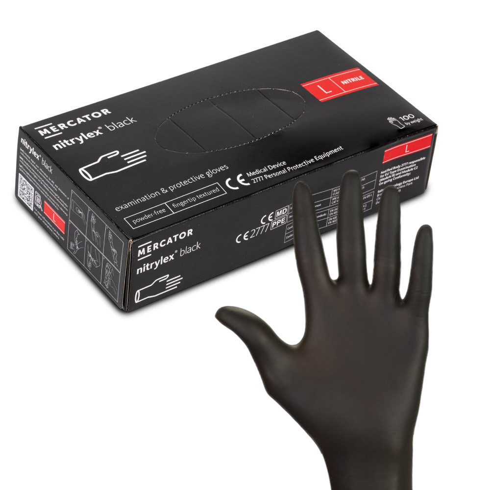 Rękawiczki jednorazowe nitrylowe diagnostyczne i ochronne Mercator rozmiar L czarne 100 szt