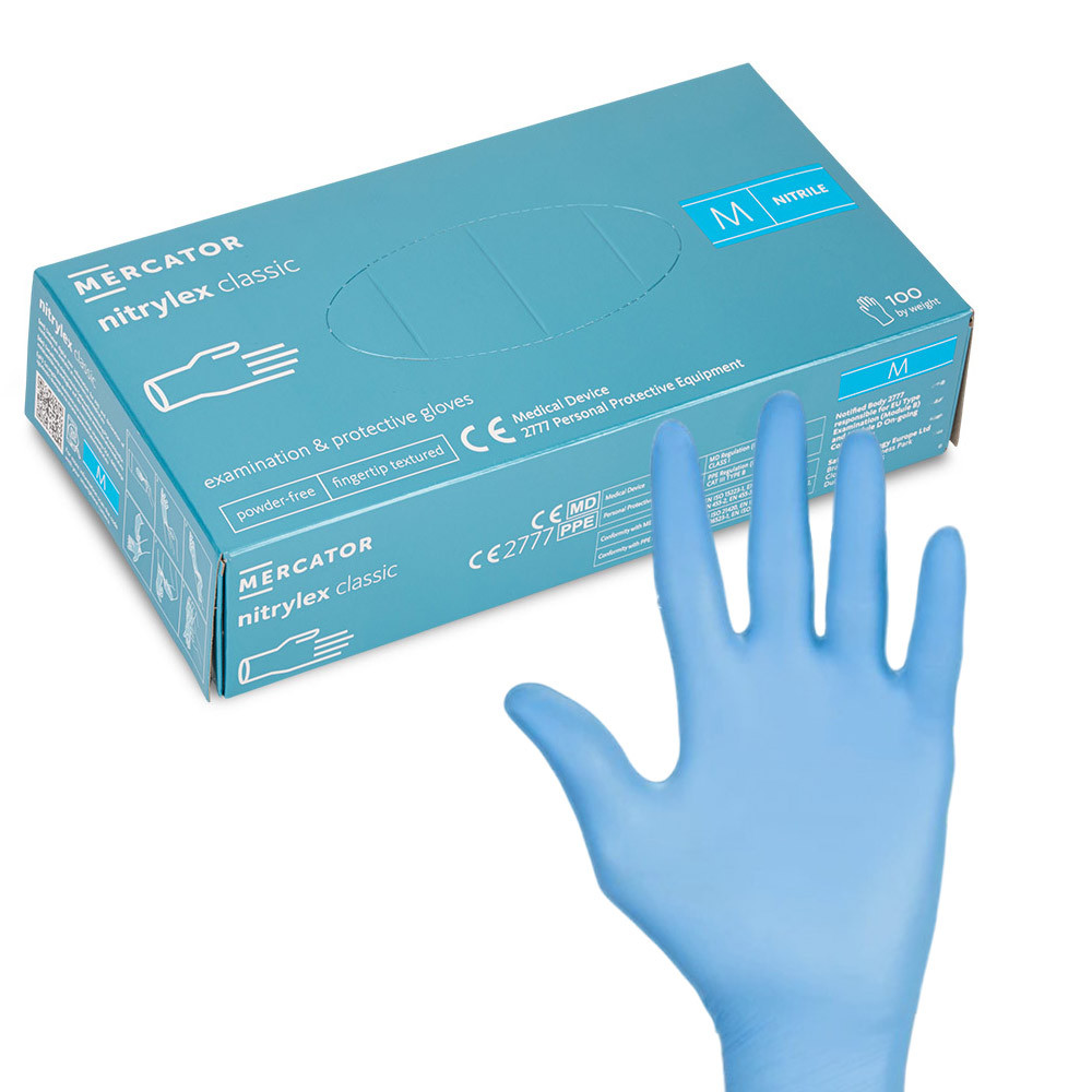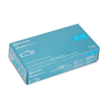 Rękawiczki jednorazowe nitrylowe diagnostyczne i ochronne Mercator rozmiar M niebieskie 100 szt