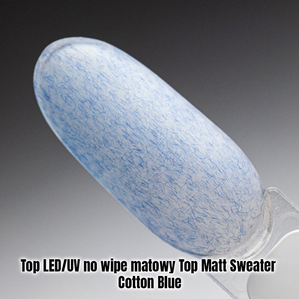 Top matujący z drobinami, dający efekt typu "sweterek" w pastelowej wersji.