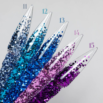 Drobiny można zatapiać pod warstwą żelu, akrylu lub bazie  – tworząc efekt delikatnych „piegi” lub pełnej, błyszczącej tafli. Każdy numer (1–21) to inna kombinacja kolorów i odcieni, dzięki czemu z łatwością dopasujesz ozdobę do swojego stylu.