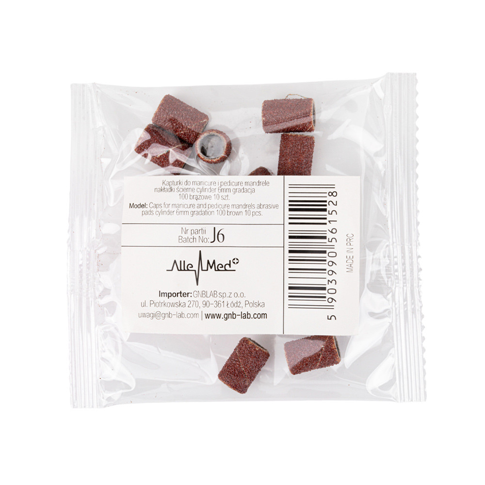 Kapturki do manicure i pedicure mandrele nakładki ścierne cylinder 6mm gradacja 100 brązowe 10 szt.