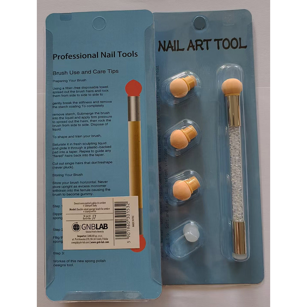 Dwustronny pędzel gąbka do ombre i nail art stempel z cyrkoniami biały