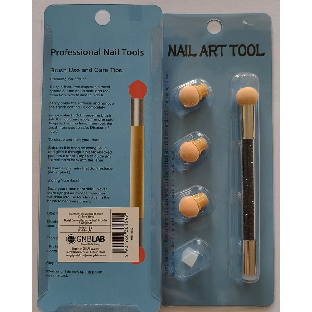 Dwustronny pędzel gąbka do ombre i nail art stempel z cyrkoniami czarny