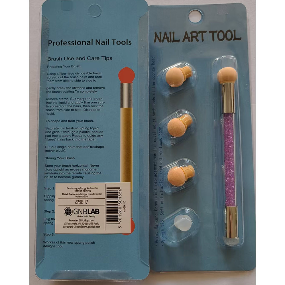 Dwustronny pędzel gąbka do ombre i nail art stempel z cyrkoniami fioletowy