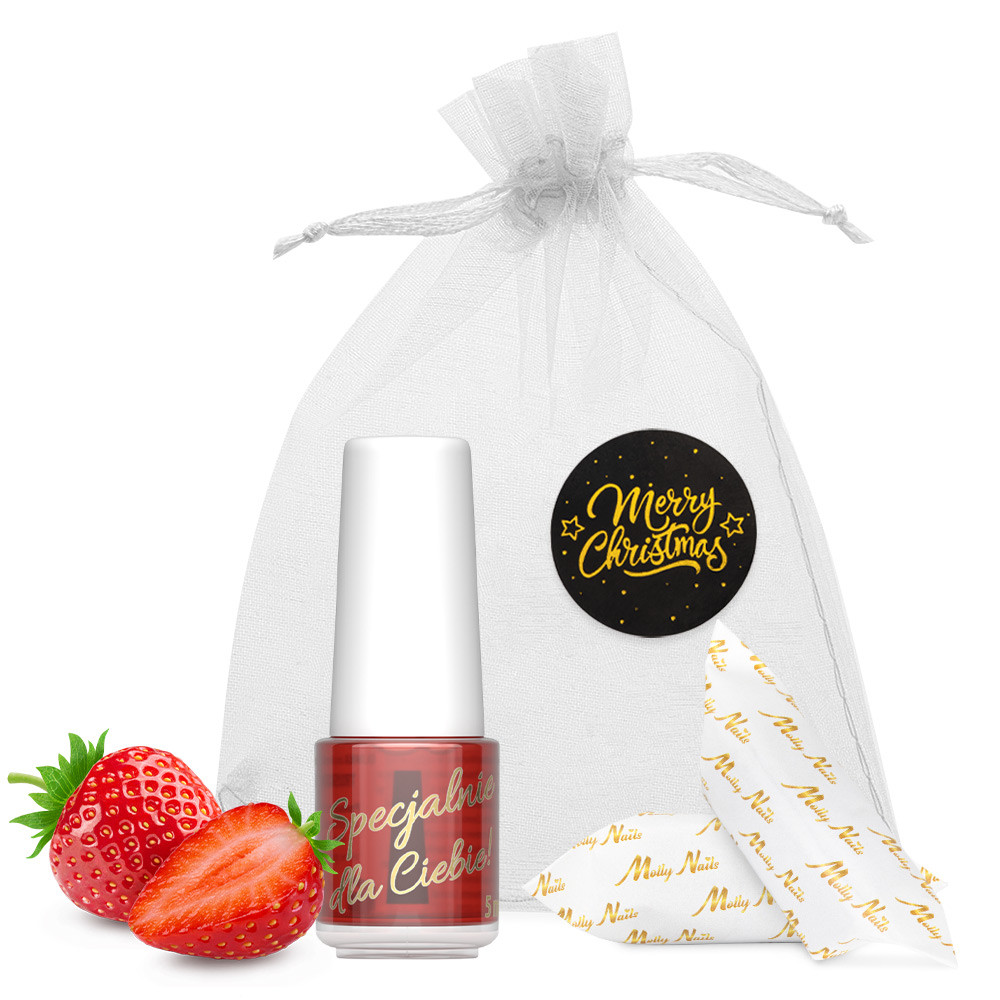 Oliwka okazjonalna do skórek i paznokci o zapachu truskawki z krówkami w ozdobnym woreczku 5ml