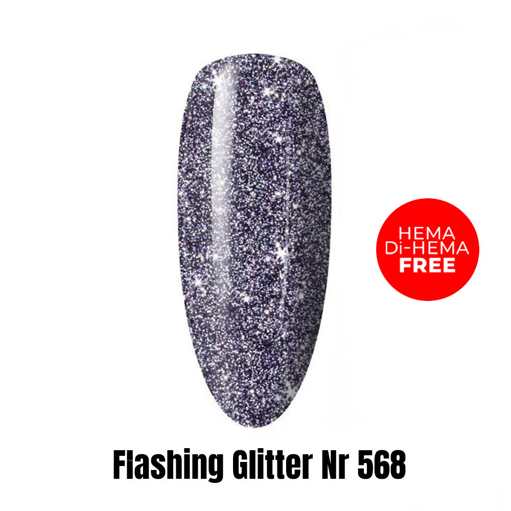 Lakier LED/UV Gel Polish Efekt flash Flashing Glitter 568 HEMA/Di-HEMA Free 1kg
