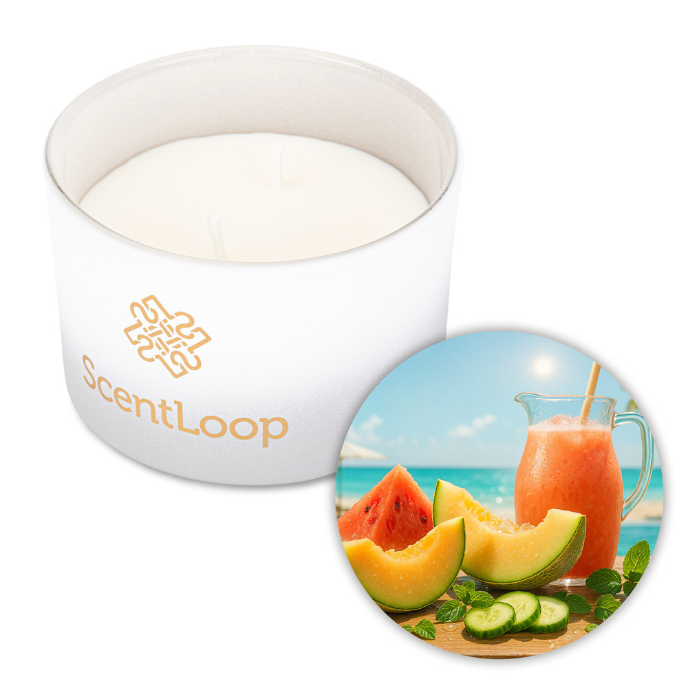 Świeca sojowa zapachowa Summer Melon Splash pachnie jak lato w szklance - lekko, soczyście i beztrosko. Na początku czuć świeży melon i arbuz, chłodne, jak schłodzony owoc wyjęty prosto z lodówki. W sercu pojawia się czysty ton ogórka, który dodaje wodnistej, rześkiej klarowności, jak otwarte okno w upalny dzień. Całość miękko osiada na delikatnej waniliowej bazie, dzięki której zapach jest jednocześnie świeży i kojąco kremowy, wprowadzając do wnętrza wrażenie jasności, lekkości i letniego luzu.