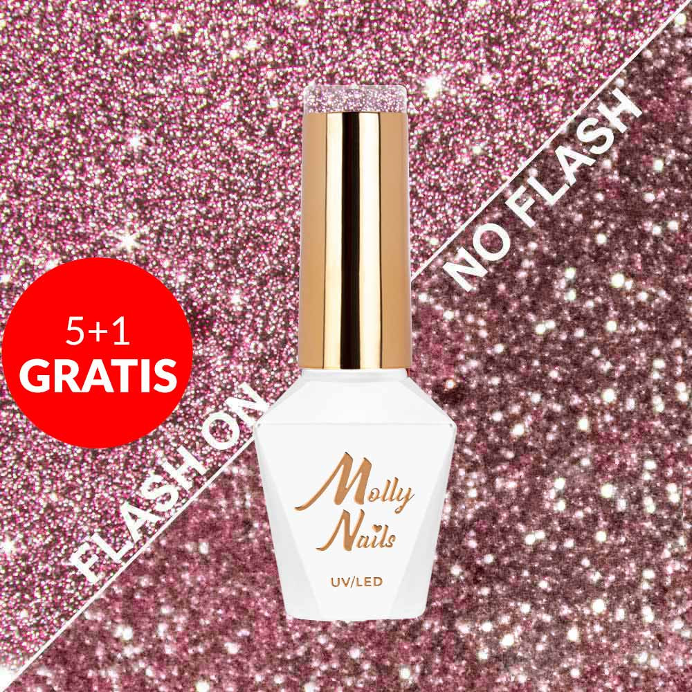 5+1gratis Lakier hybrydowy Molly Nails Flashing Lights Oh, so glow! HEMA/Di-HEMA Free 8g Nr 562