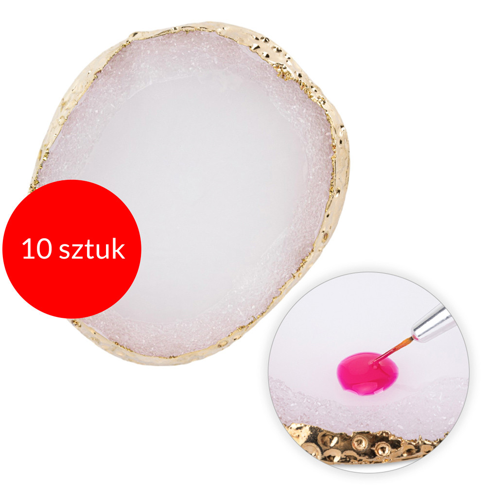 Wykonana z żywicy podkładka sprawdzi się jako paletka do mieszania lakierów hybrydowych i żeli. Dzięki imitującemu kamień design’owi oraz złotym brzegom, stanowić będzie również piękne tło do zdjęć Twoich stylizacji. Możesz ją również wykorzystać jako ozdobę w mieszkaniu.