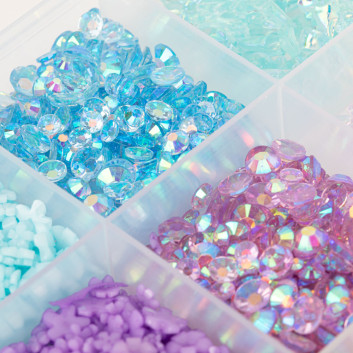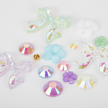 - Zestaw bogaty w różne kształty: perełki, cyrkonie, kokardki, serca, kwiaty, bulion i inne (w zależności od wariantu).
