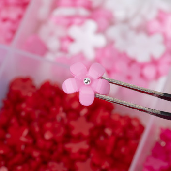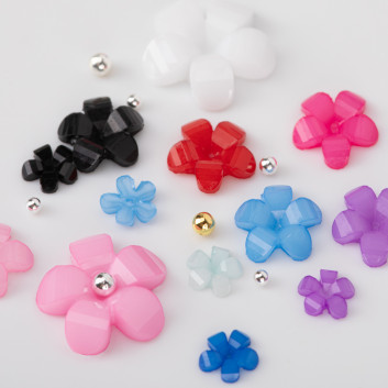 - Zestaw bogaty w różne kształty: perełki, cyrkonie, kokardki, serca, kwiaty, bulion i inne (w zależności od wariantu).