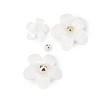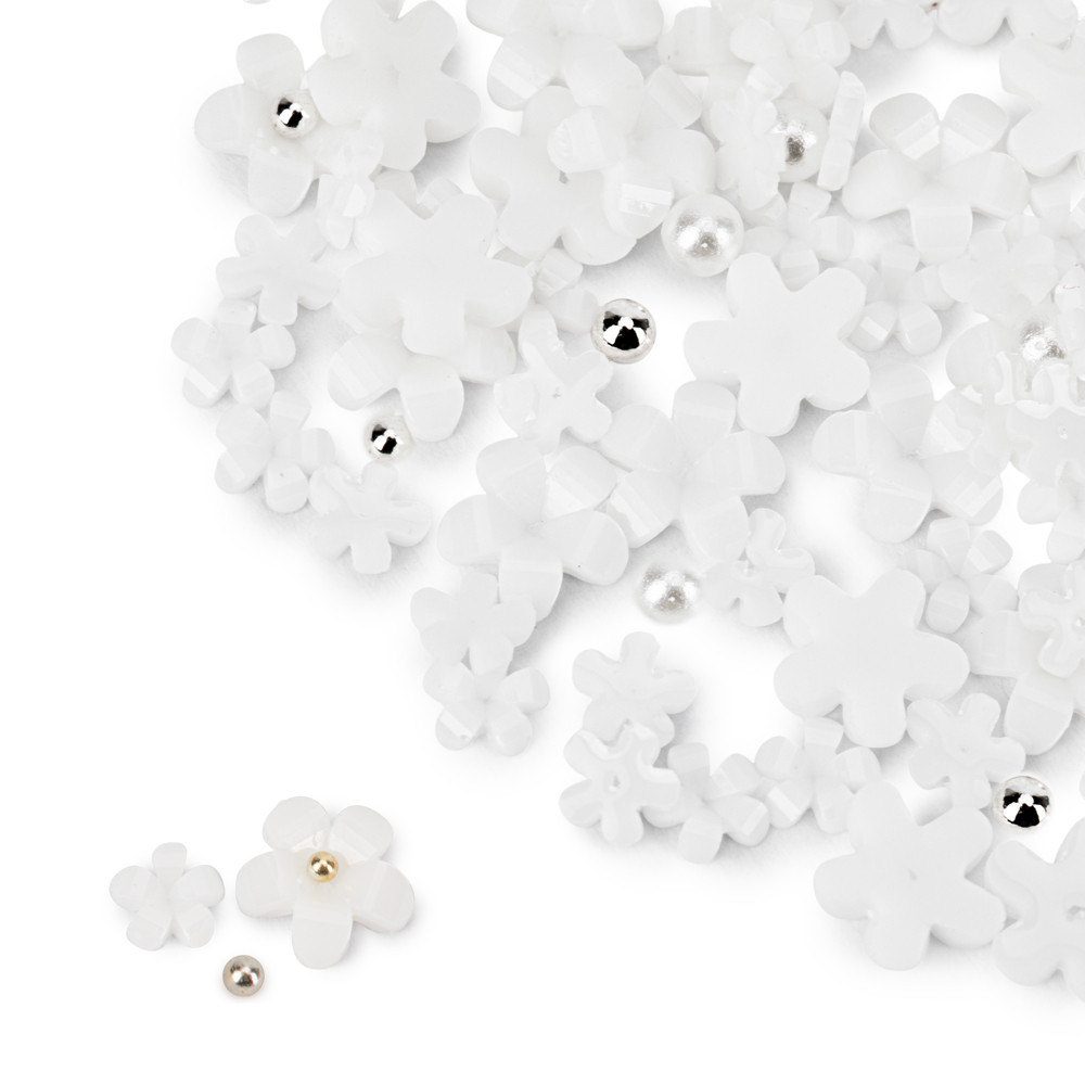 Ozdoby do paznokci Molly Nails kwiatki akrylowe białe 150 sztuk + kulki